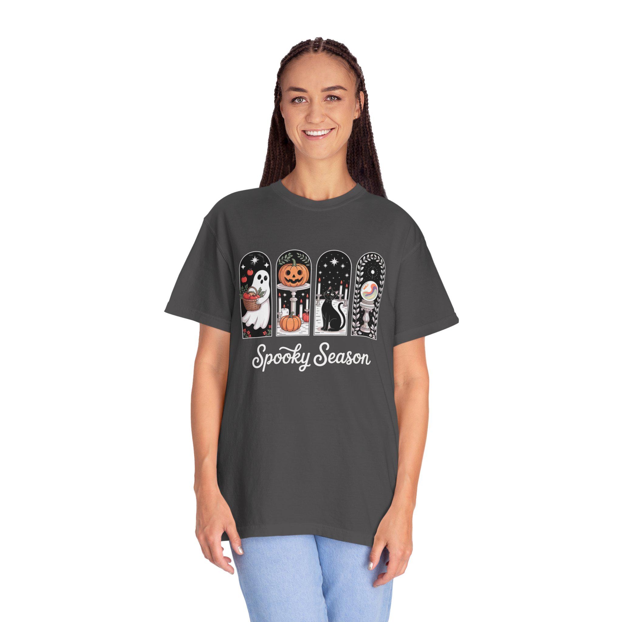 Embrace the festive spirit with this Unisex Garment-Dyed T-shirt, perfect for celebrating the enchanting season of fall and Halloween. The unique garment-dyed fabric offers a soft, lived-in feel that complements every autumn adventure, from cozy gatherings to spooky parties. Ideal for anyone looking to express their love for all things autumn and Halloween, this tee is a must-have for those who love seasonal festivities. Whether it's for a Halloween bash, pumpkin patches, or casual hangouts, it’s a versatile addition to your wardrobe. Available in a wide range of sizes and colors, this T-shirt caters to everyone in the family, making it a great gift option for friends and loved ones during Halloween festivities or as a thoughtful present for birthdays and celebrations. Get ready to make memories this spooky season!