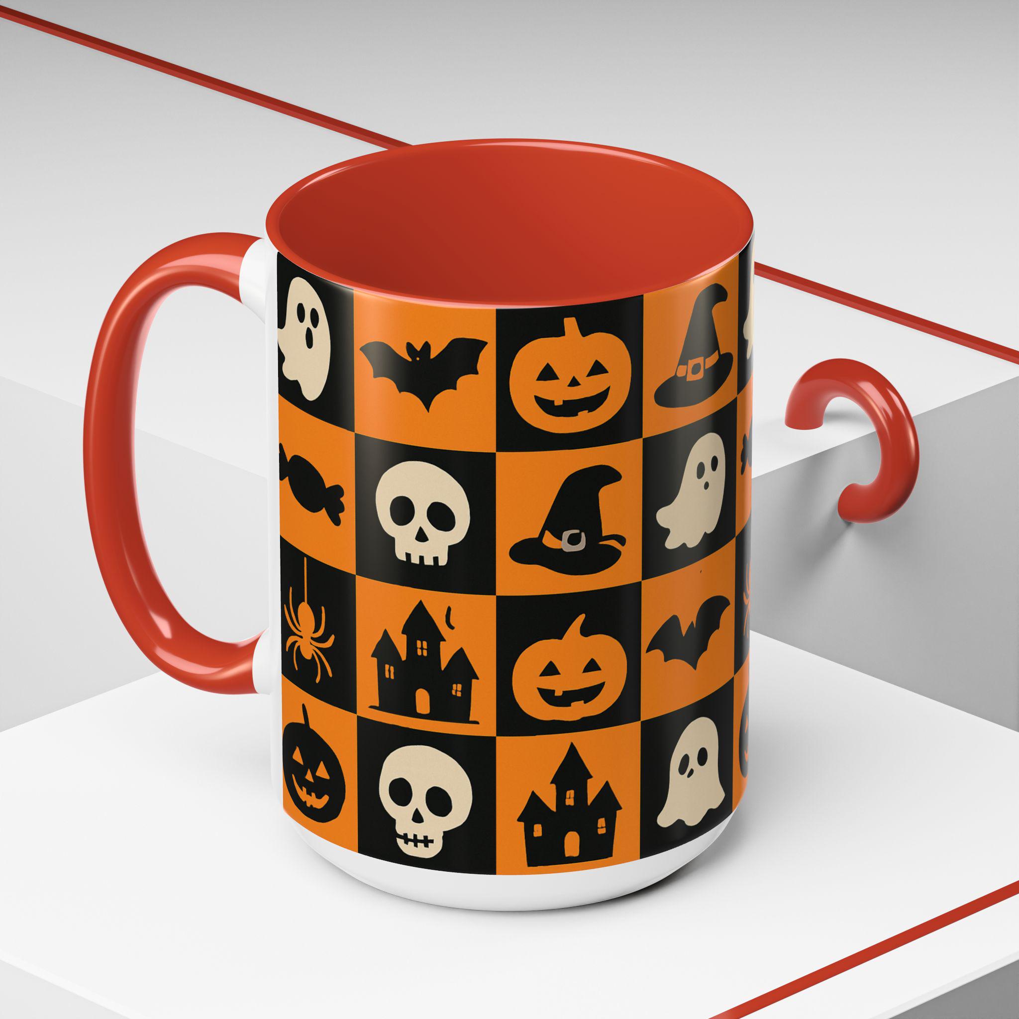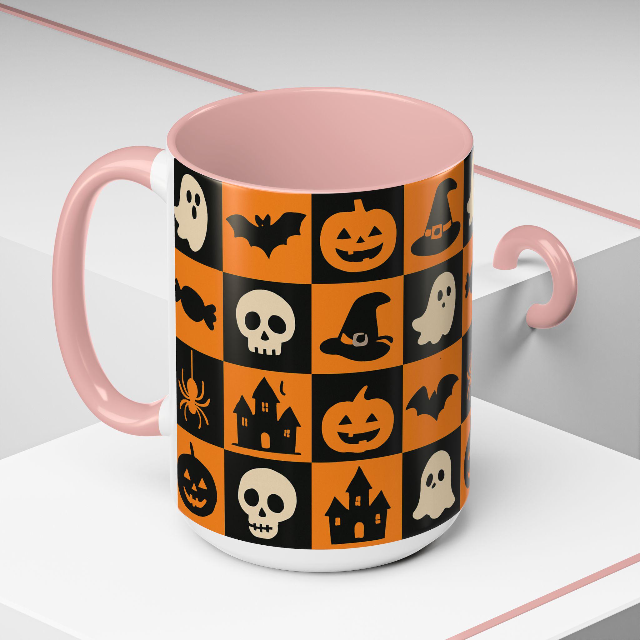 Introducing our charming Accent Coffee Mug, designed to bring a splash of personality to your daily routine! Perfect for sipping your favorite warm beverages, this mug features vibrant colors and a playful Halloween theme, making it a delightful addition to your kitchen or office desk. Made from high-quality white ceramic with a glossy finish, it not only looks fantastic but also feels great in your hands. This mug is perfect for those who love to celebrate the spooky season, from Halloween parties to cozy evenings at home. Ideal for anyone looking to add a fun touch to their drinkware collection or gift to a friend who adores all things Halloween. Whether you're enjoying a morning coffee or an evening hot chocolate, this mug will elevate your experience, keeping your spirits high and your beverages perfectly brewed!