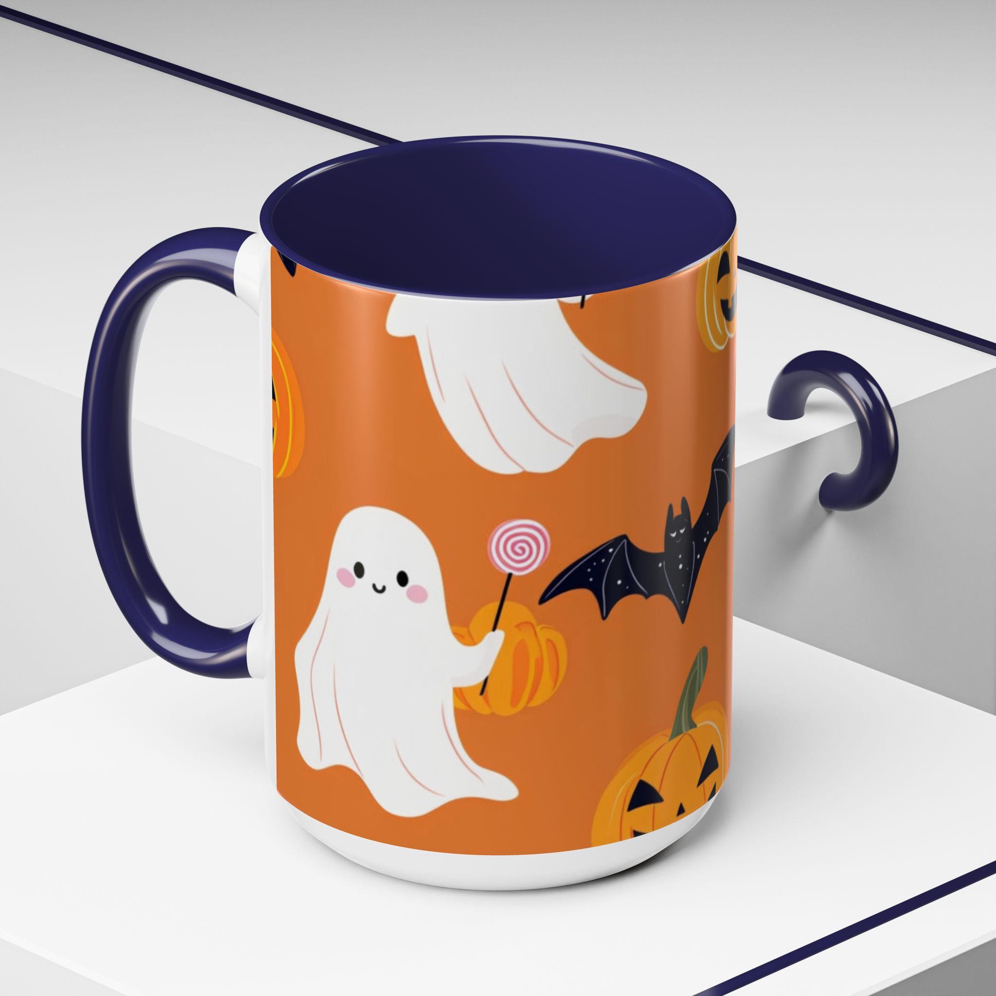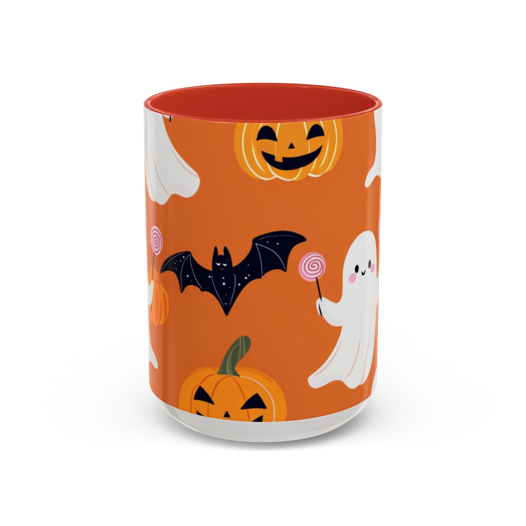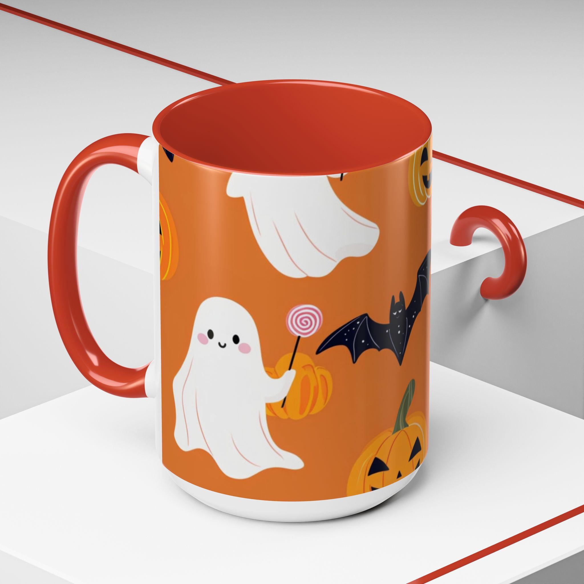 Introducing our vibrant Accent Coffee Mug, the perfect companion for cozy mornings and coffee breaks! This beautifully designed mug brings a playful spirit to your daily routine, featuring a whimsical Halloween theme with ghosts, bats, and pumpkins that evokes a fun and festive atmosphere. Whether you're sipping your favorite brew at home or in the office, this mug adds a touch of charm to every occasion. It's an ideal gift for coffee lovers, Halloween enthusiasts, or anyone who enjoys a unique touch to their drinkware. Perfect for holidays like Halloween, this mug will surely delight friends and family during spooky season celebrations.