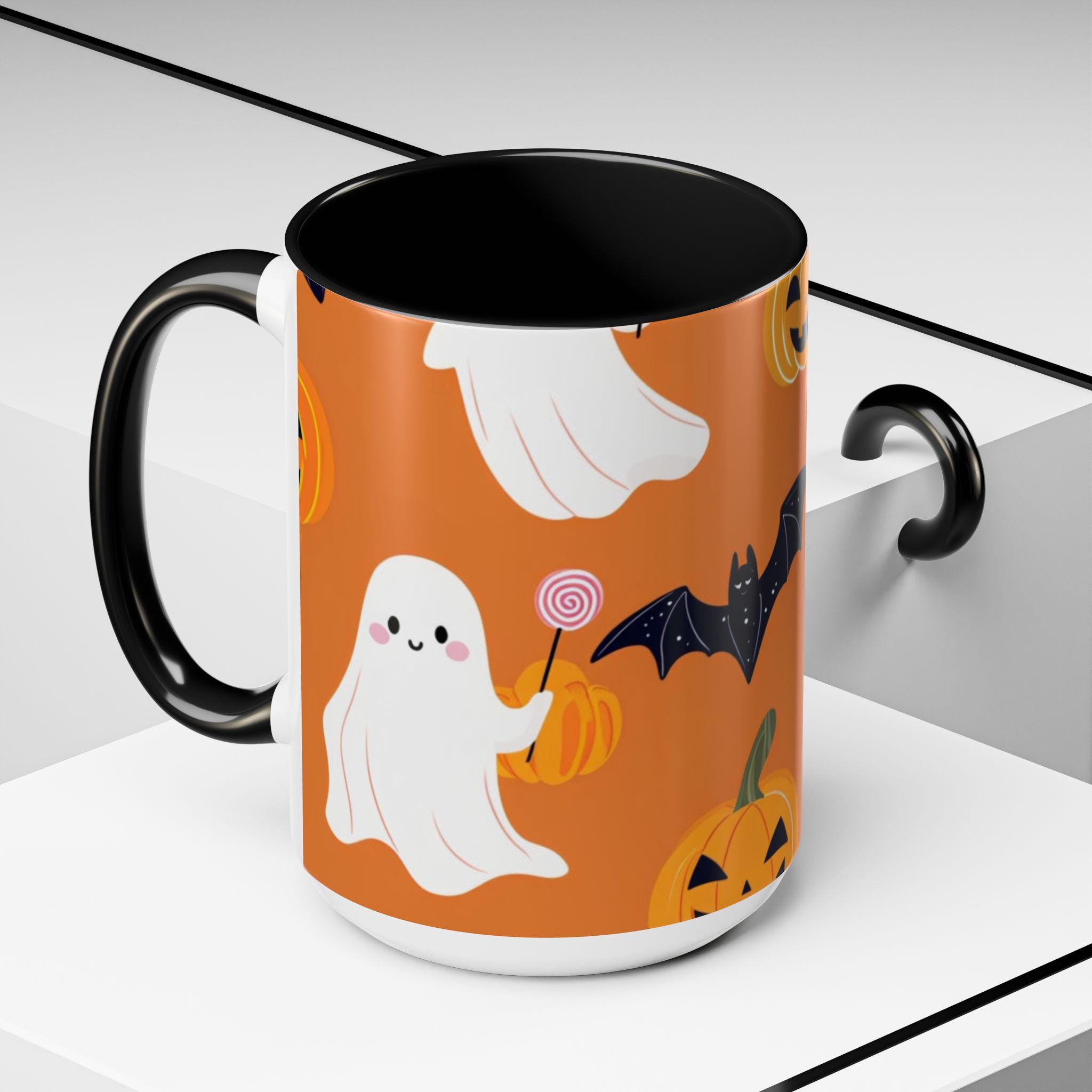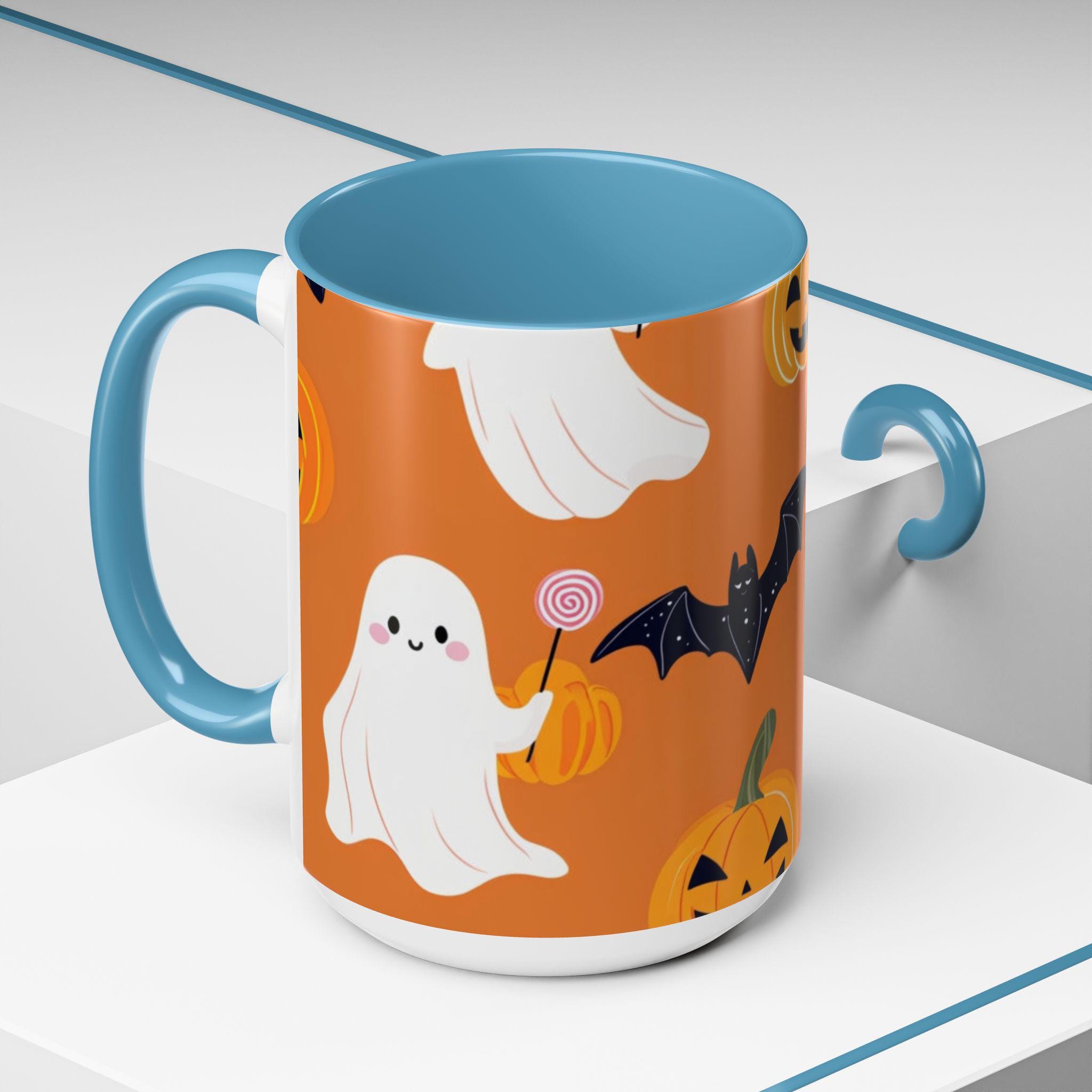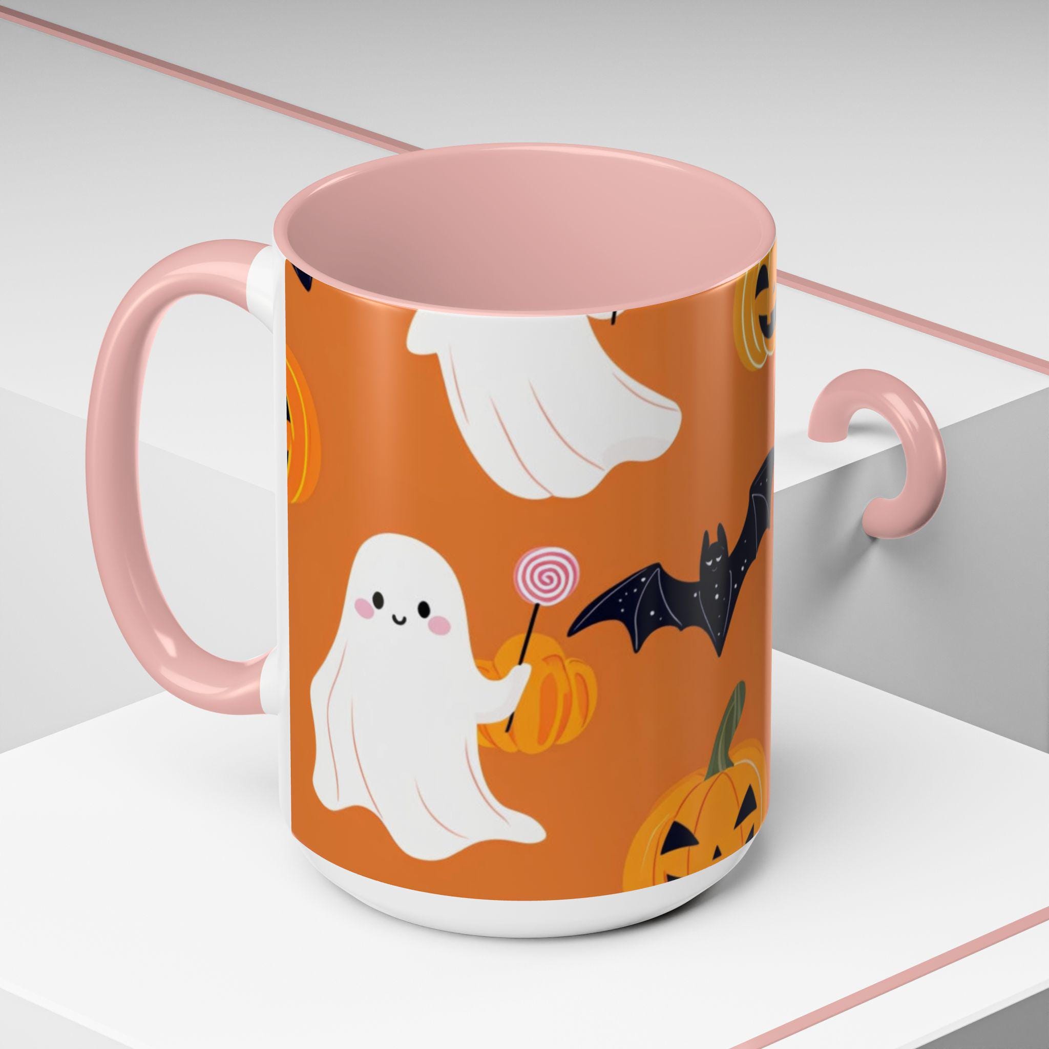 Introducing our vibrant Accent Coffee Mug, the perfect companion for cozy mornings and coffee breaks! This beautifully designed mug brings a playful spirit to your daily routine, featuring a whimsical Halloween theme with ghosts, bats, and pumpkins that evokes a fun and festive atmosphere. Whether you're sipping your favorite brew at home or in the office, this mug adds a touch of charm to every occasion. It's an ideal gift for coffee lovers, Halloween enthusiasts, or anyone who enjoys a unique touch to their drinkware. Perfect for holidays like Halloween, this mug will surely delight friends and family during spooky season celebrations.