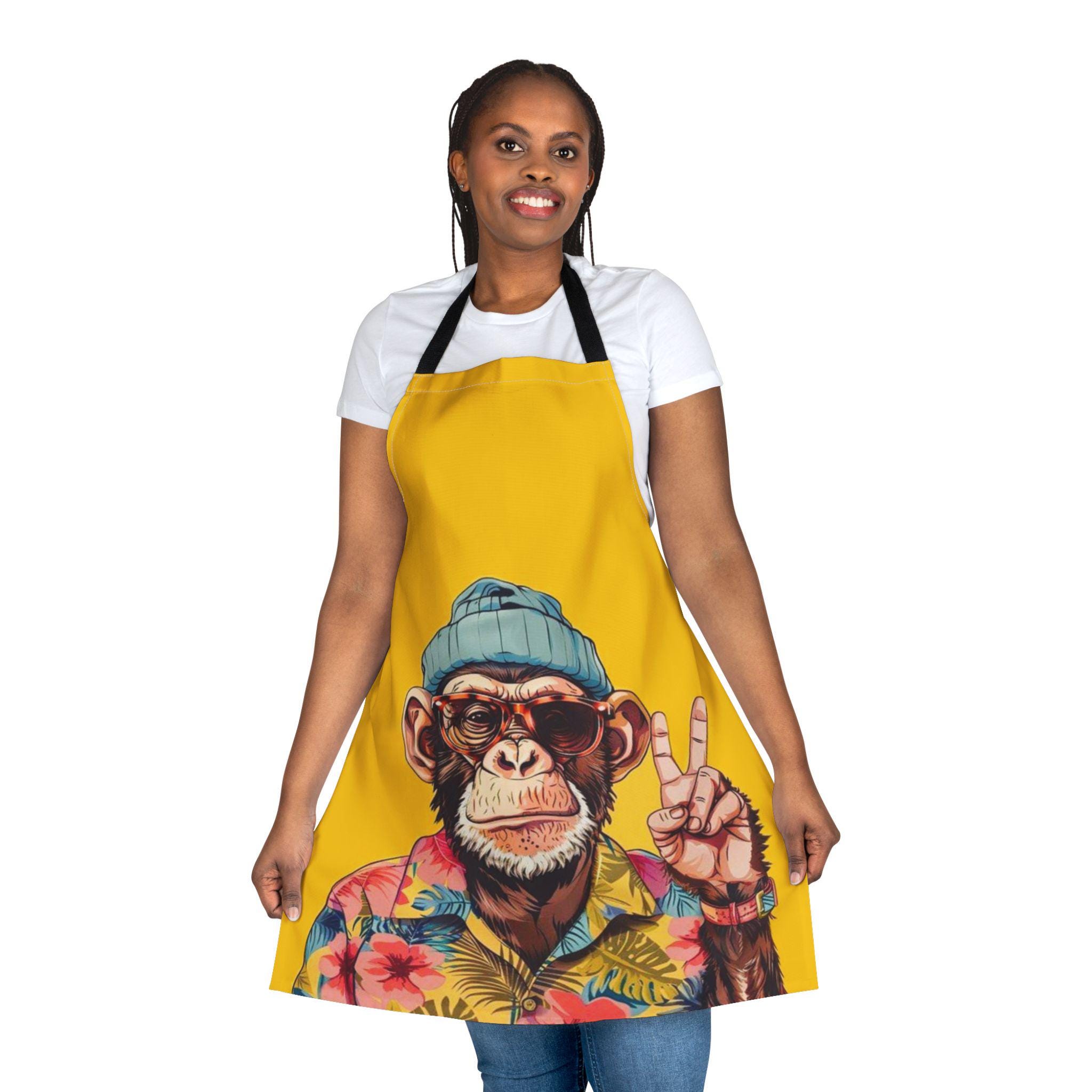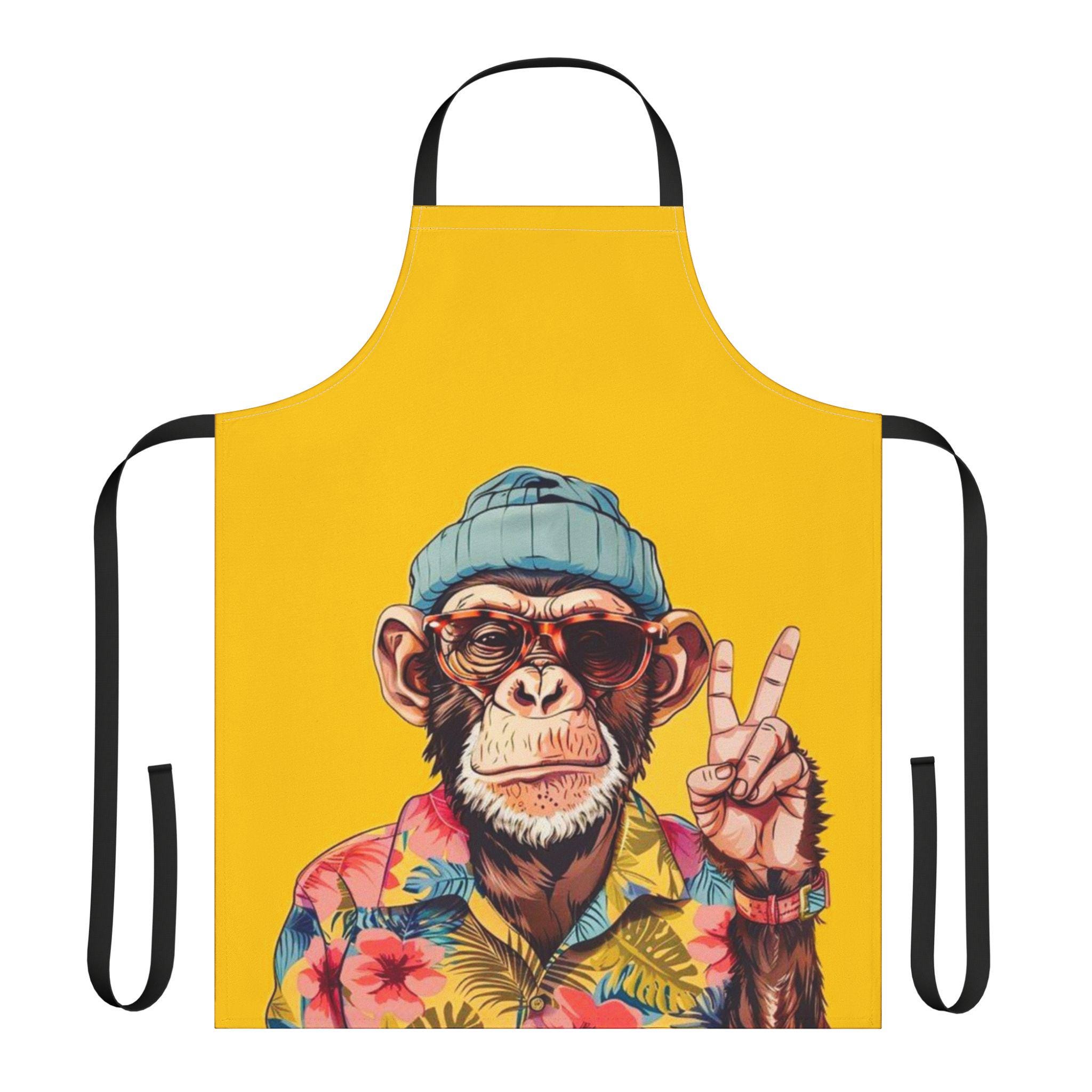 Bright, playful apron built for people who cook, craft, and entertain with personality. The bold yellow canvas showcases a cheeky chimp in a floral shirt and knit beanie, bringing a splash of humor to messy moments. Lightweight yet durable, the apron’s fine-weave polyester feels soft against the skin and resists stains so you can focus on the work — grilling, painting, or hosting — without worrying about spills. The adjustable tie-back and choice of five strap colors let you dial in a look that fits your kitchen or studio vibe. Assembled in the USA with attention to print quality, this apron keeps colors crisp so the artwork stays lively wash after wash.