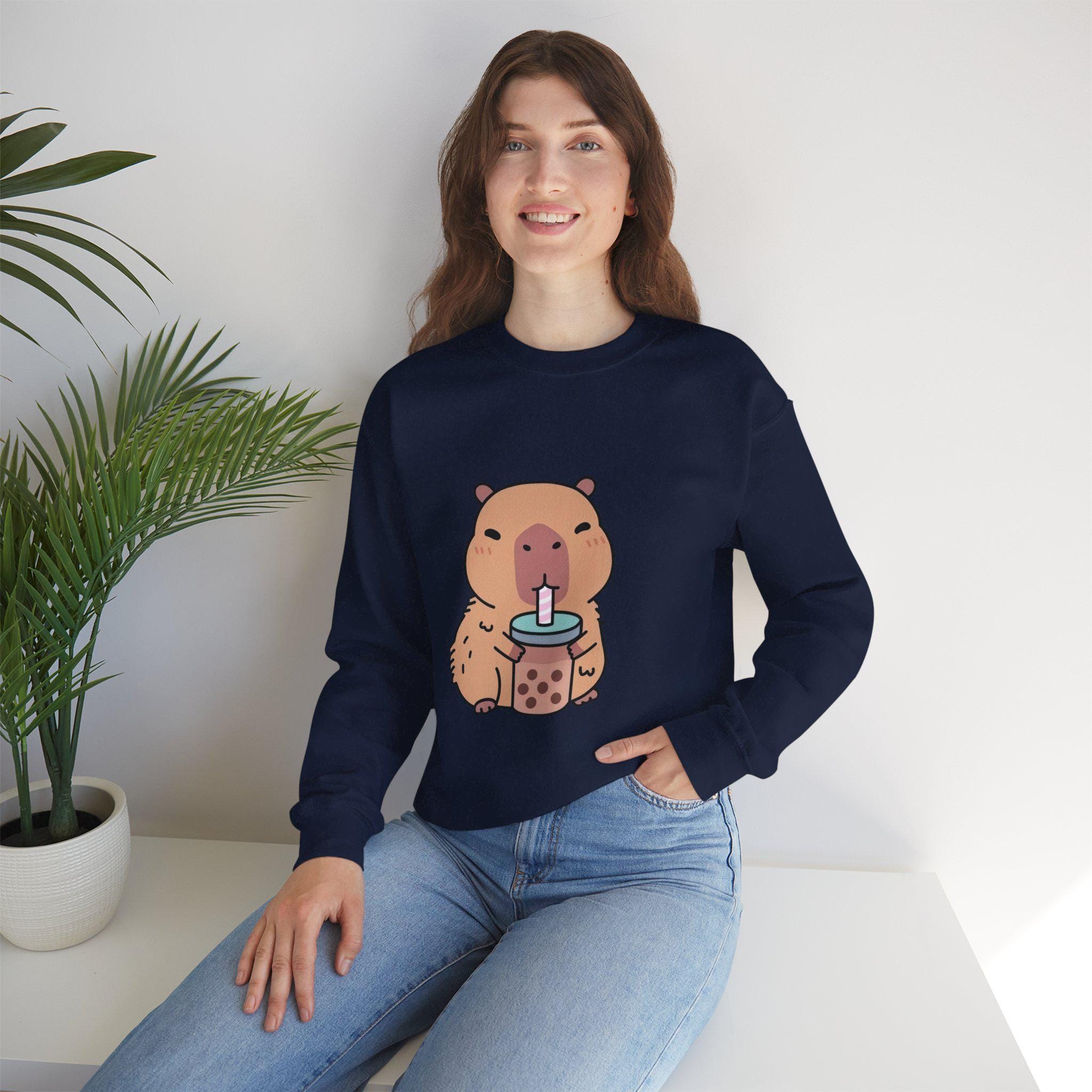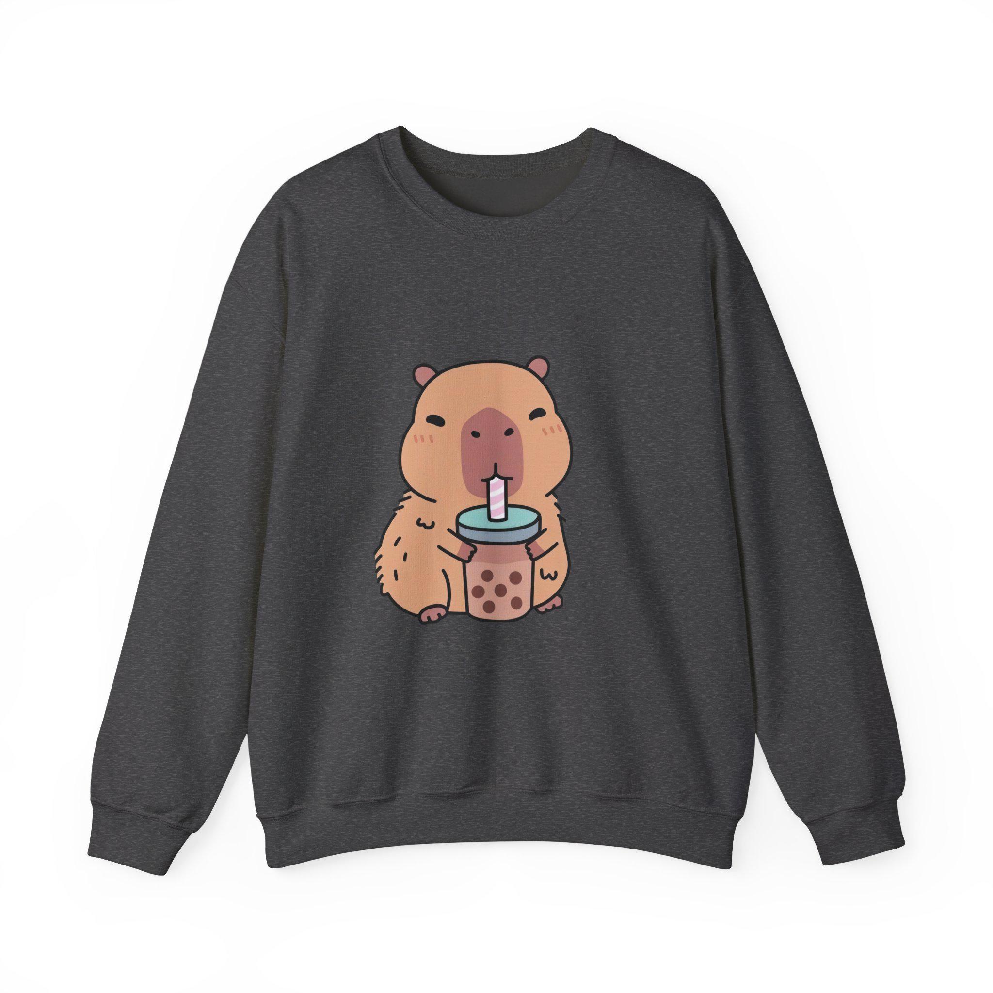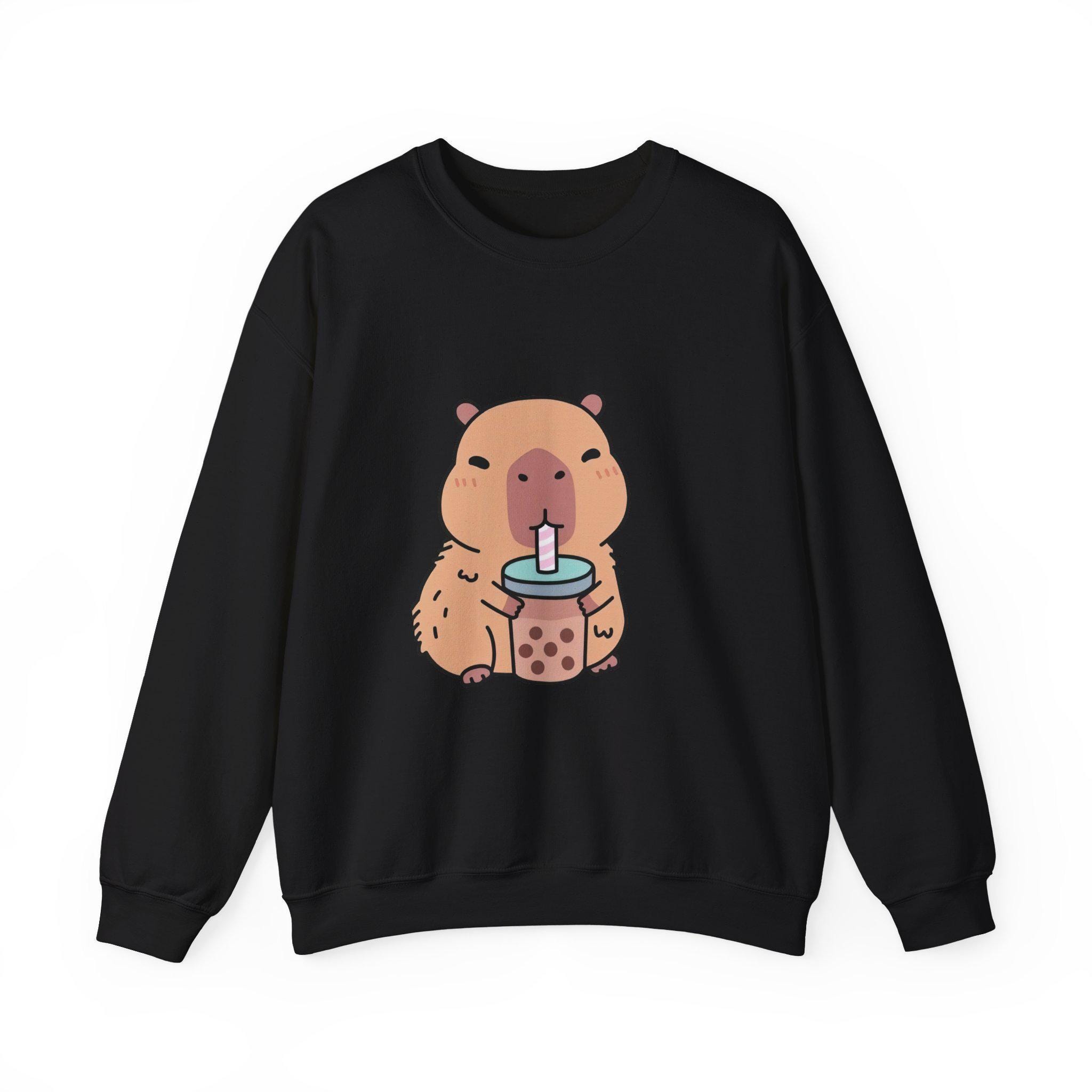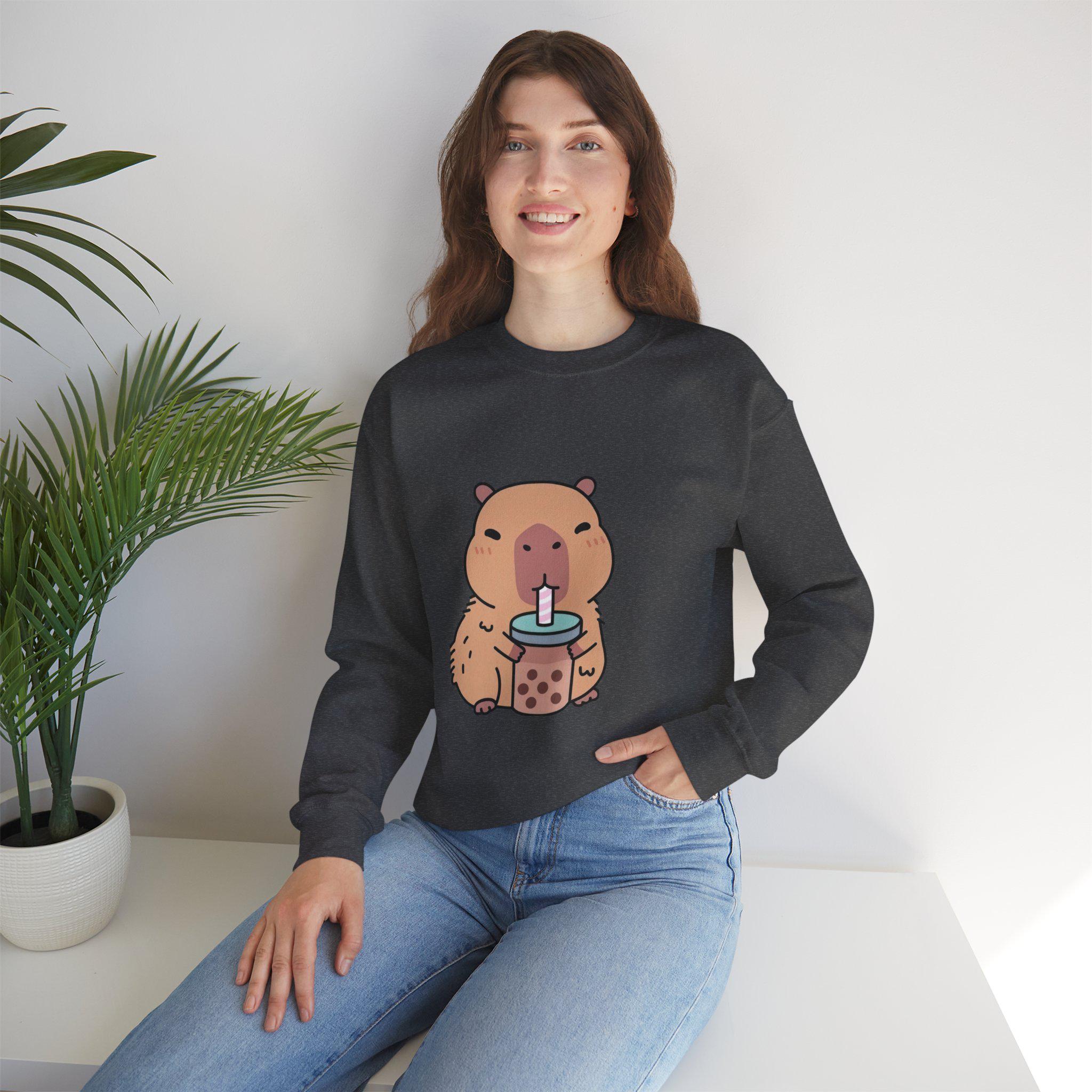 A soft, midweight crewneck that feels like a warm, easy hug on slow mornings. The front shows a sleepy capybara clutching a pastel boba cup — sweet, slightly sleepy, and endlessly charming. Wear it when you’re sipping a drink at a quiet café, curled up with a good show, or out for a casual walk; the illustration adds a playful, cozy touch without shouting for attention. The neutral white backdrop keeps the look mellow and wearable, while the roomy classic fit layers nicely over tees. Built to last with reinforced stitching and responsibly sourced cotton, this sweatshirt settles into the rhythm of everyday life and becomes something you reach for when comfort matters most.
